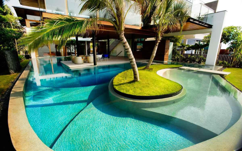 Make it more elegant by adding waterfalls, fountains, or spa jets.