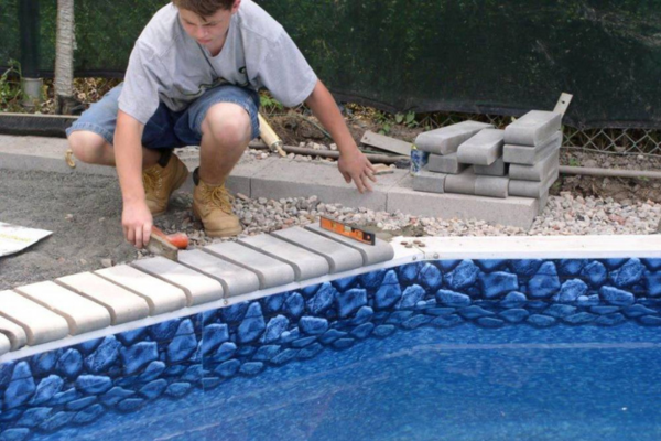 Make a secure and attractive pool deck using different materials such as concrete, tile or wood.